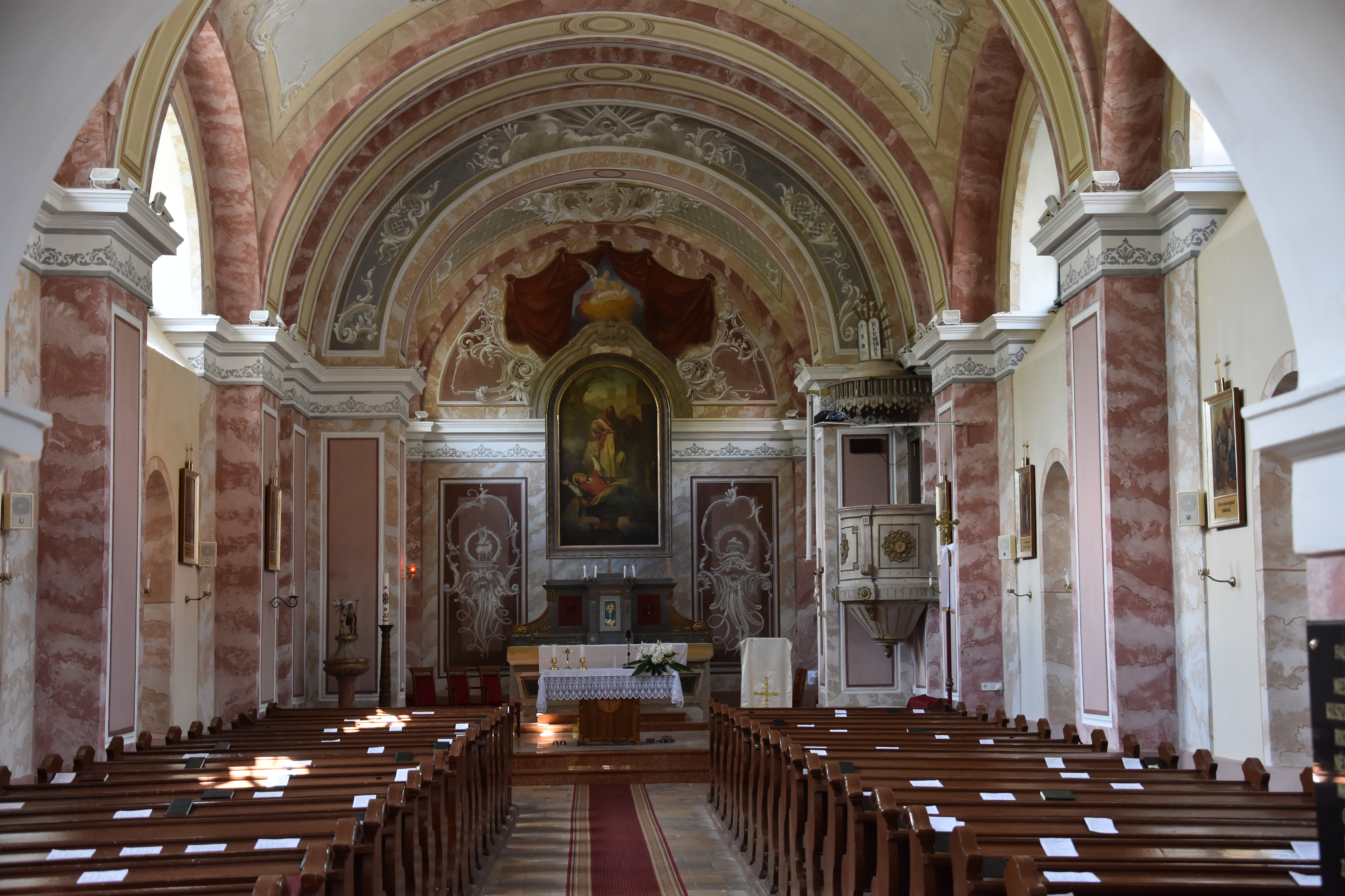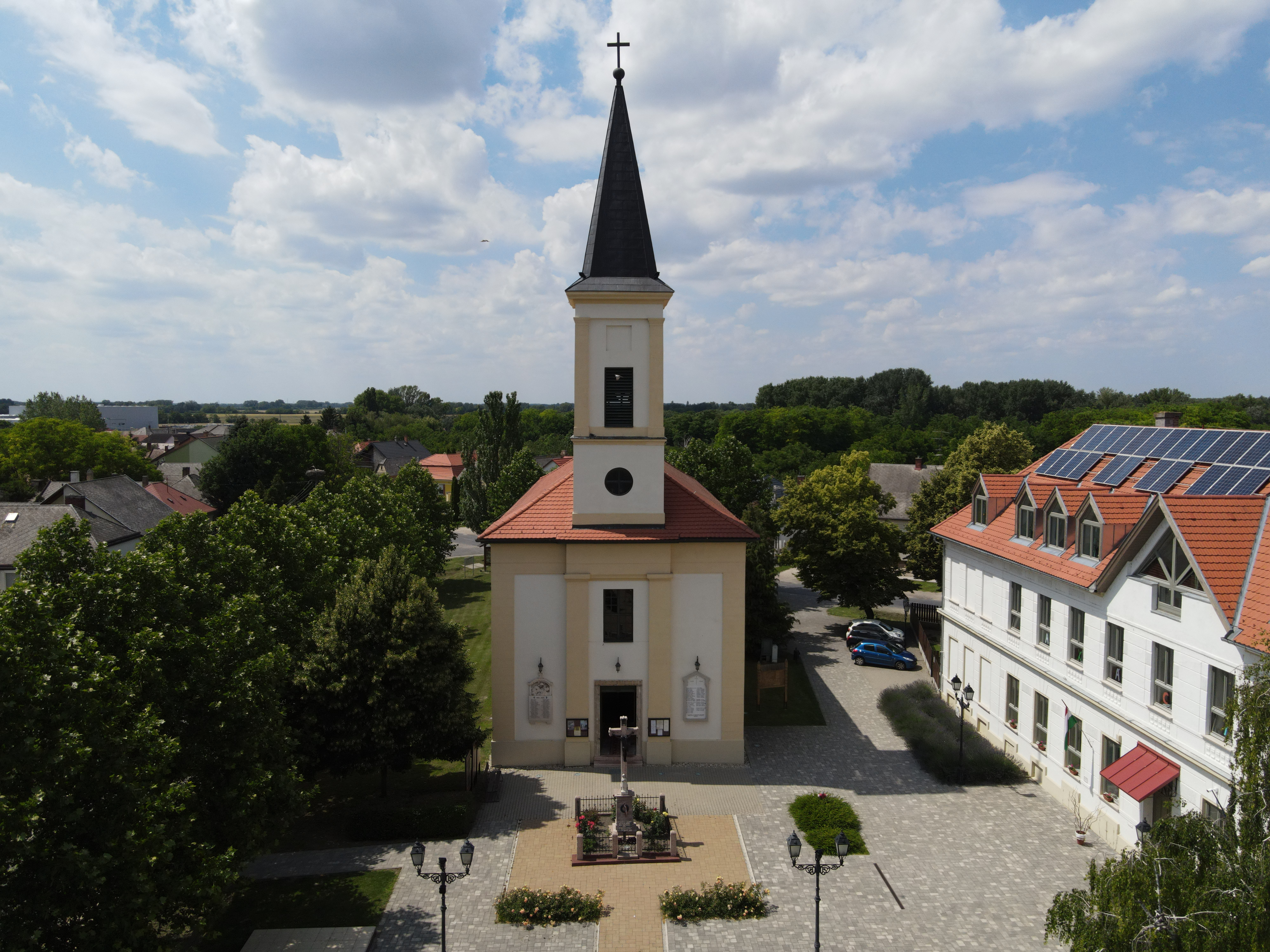 A falu első templomát Széchényi Lőrinc építtette, és fia, Pál nagyprépost (később püspök, majd kalocsai érsek) szentelte fel 1677 körül. A település egyháza az öttevényi plébánia alá tartozott és csak a 18. század végétől lett önálló egyházközség. A mai templom 1843-44-ben épült, késő klasszicista stílusban, Szinger György irányításával. A régi templomból megmaradt húsz férőhelynyi pad és az 1718-ból való kehely, amelyen a GVNT. SIGHET felirat látható. Az oltárkép Szent Lőrinc vértanúságát ábrázolja. A templom belső festése márványhatású. A mennyezeti freskókat Borsa Antal készítette 1957-ben. A templom előtti keresztnél márványtábla emlékeztet Jáki Teodóz bencés atyára, aki évtizedeken át vezette Kunszigeten a hagyományos – megyerikumként is számon tartott – húsvéthajnali „Jézuskeresés” körmenetét.